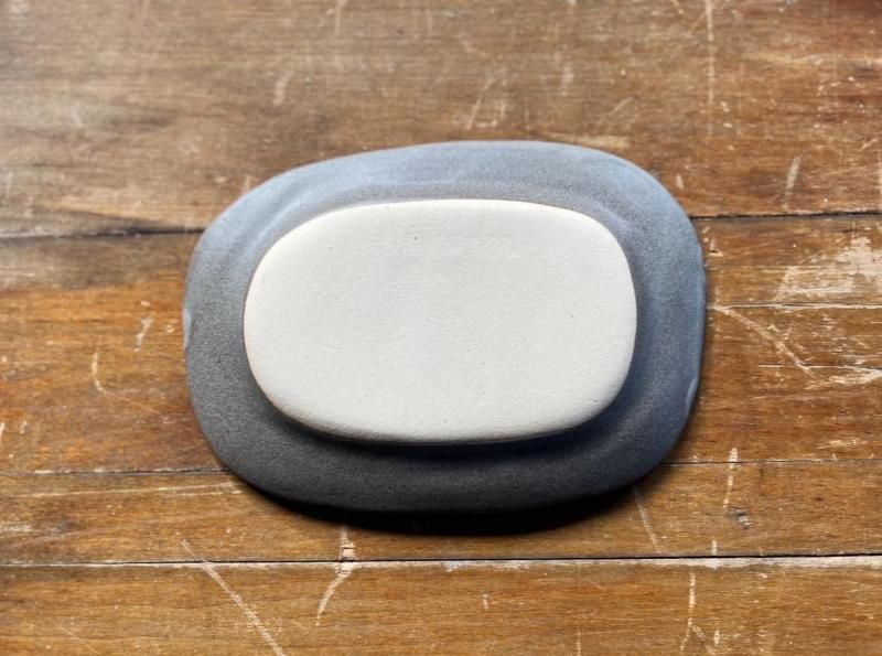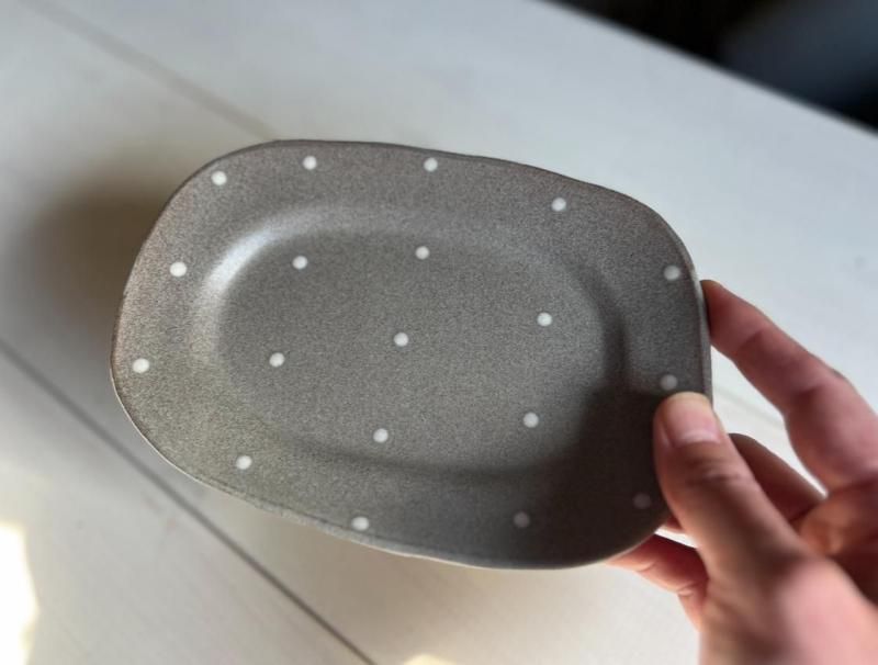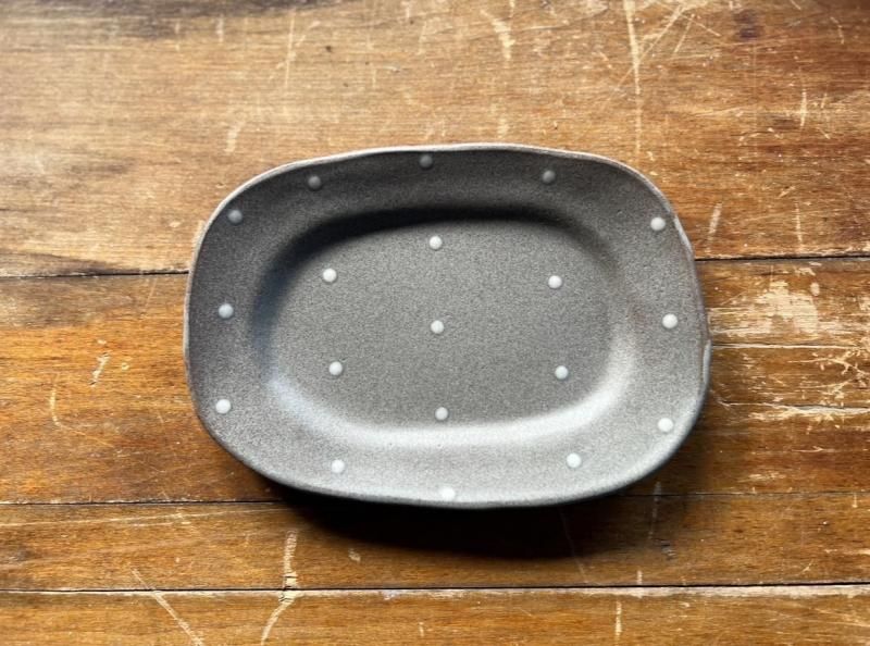 やわらかなフォルムに、手仕事で描かれたドットが愛らしいサニークラフトのリム長皿。