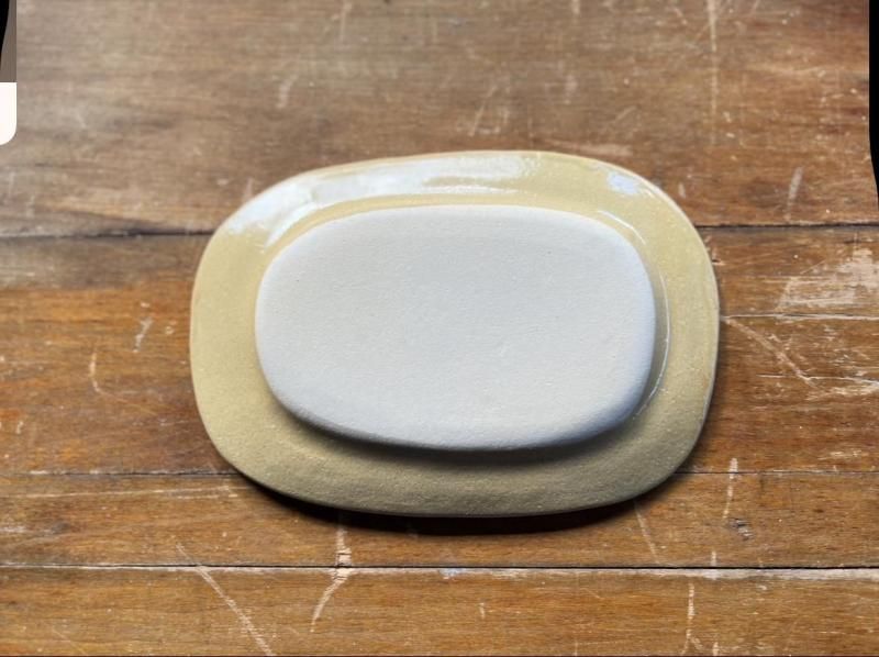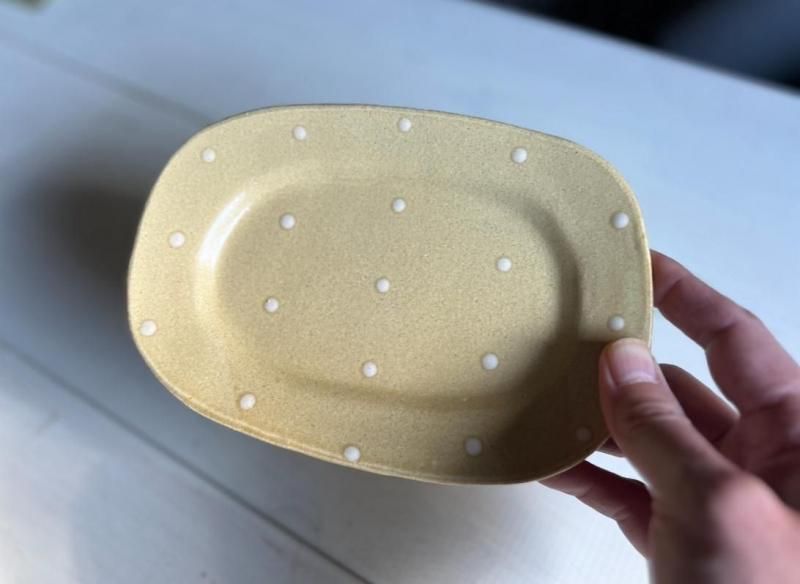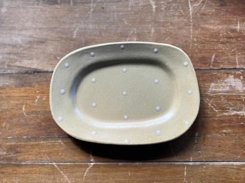 やわらかなフォルムに、手仕事で描かれたドットが愛らしいサニークラフトのリム長皿。