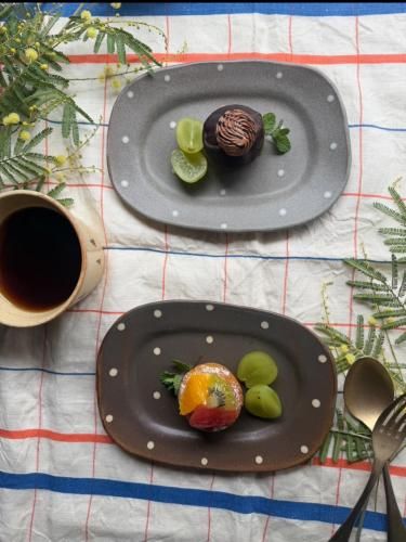 デザートやおやつ、おかずを少しずつ並べても絵になる一枚です。