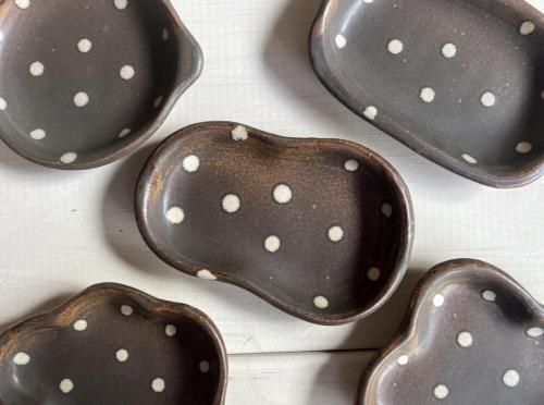 落ち着いた色合いの中に、素朴なドットがさりげなく映え、テーブルに自然と溶け込みながらも存在感があります。